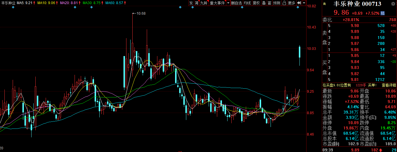 7月18日,丰乐种业高开,股价一度涨停,截至发稿,报9.86元,涨7.52%。