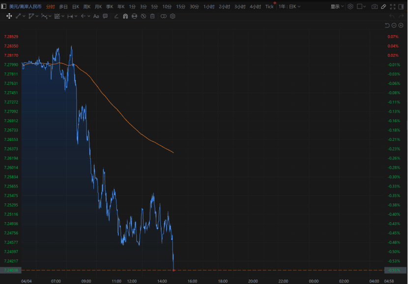 在特朗普的关税当中,原有的市场均衡被彻底打破。这一点非常明显地反映在汇市当中。昨天,美元指数大跌,今天仍在持续。相应地,非美货币大幅飙升。人民币不到两天最大涨幅超过1000点。