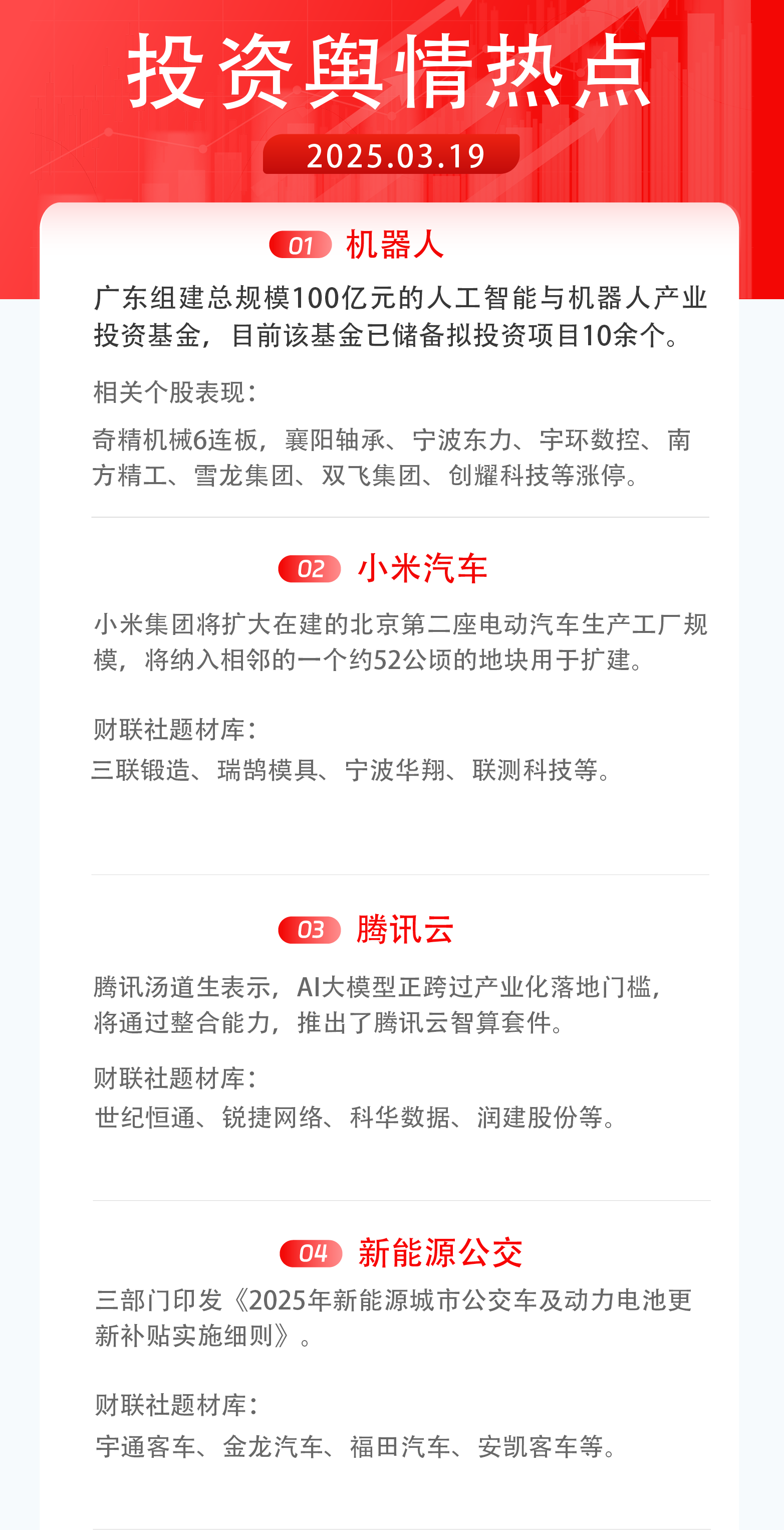 3月19日舆情热点:机器人、小米汽车、腾讯云
