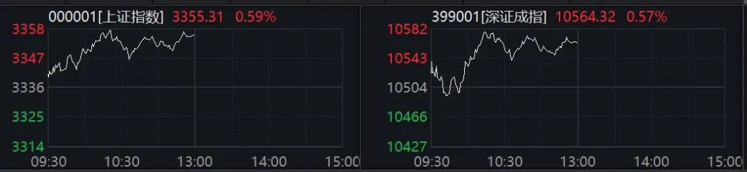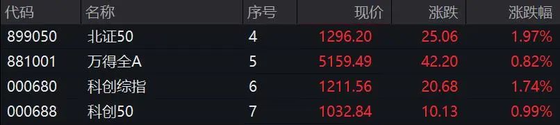 今日早盘,A股整体高开反弹,小盘成长股表现较强,北证50涨近2%,中证500、中证1000也均涨超1%。超4500只个股上涨,成交略有萎缩的趋势。