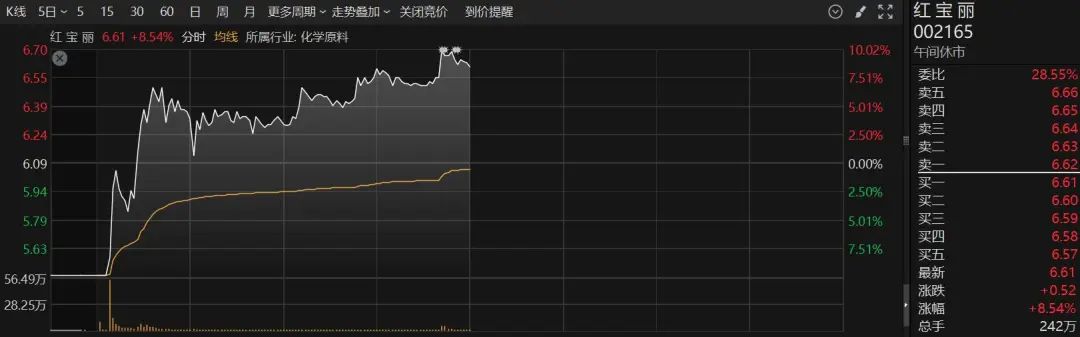 盘面上,医药、国防军工、宠物经济、旅游等板块涨幅居前,家用电器、电信服务、银行、轨交设备等板块跌幅居前。个股方面,环氧丙烷概念股人气股红宝丽盘中触及涨停,上演“地天板”。该股昨日一字跌停,今日早盘跌停开盘。