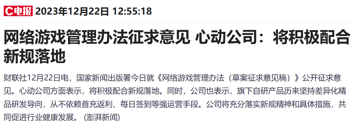 心动公司方面表示,将积极配合新规落地。同时,公司也表示,旗下自研产品历来坚持差异化精品研发导向,从不依赖首充返利、每日签到等强运营手段。
