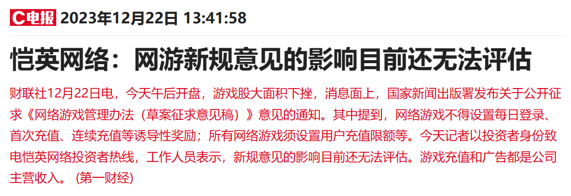 ②恺英网络工作人员表示,新规意见的影响目前还无法评估。