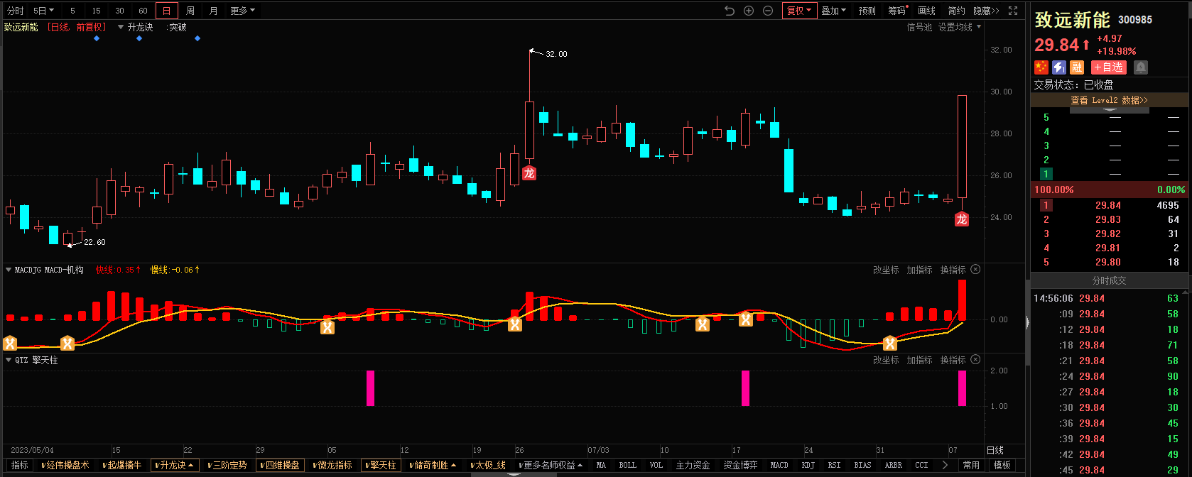 3)参考技术指标:致远新能-升龙诀-指标出现龙信号