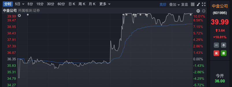二级市场上,中金公司今日午后突然快速拉升涨停,放量成交53亿元。9月以来,中金公司累计涨幅近40%。