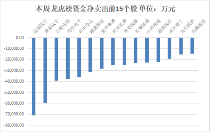 个股龙虎榜净卖出金额居前的15只个股分别为: