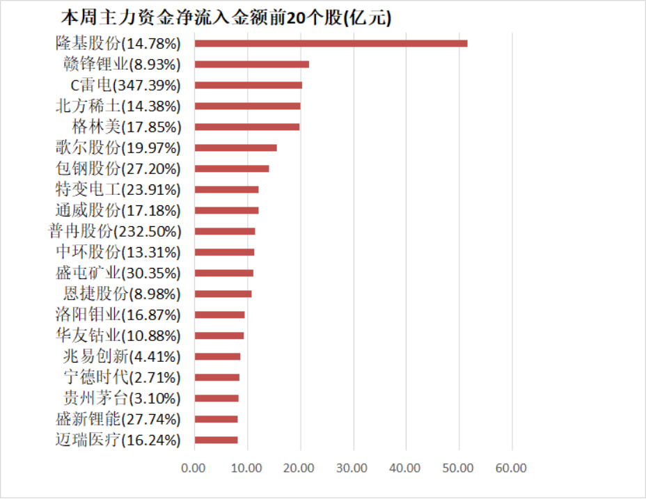4、隆基股份本周净流入51.51亿元居首