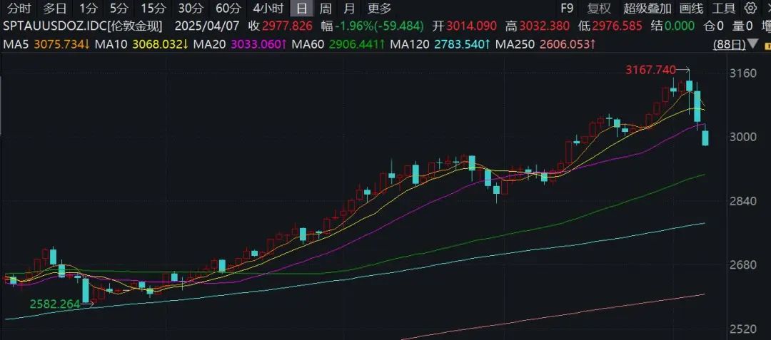 现货黄金也下挫近2%,跌破3000美元/盎司。COMEX期铜一度跌超8%。
