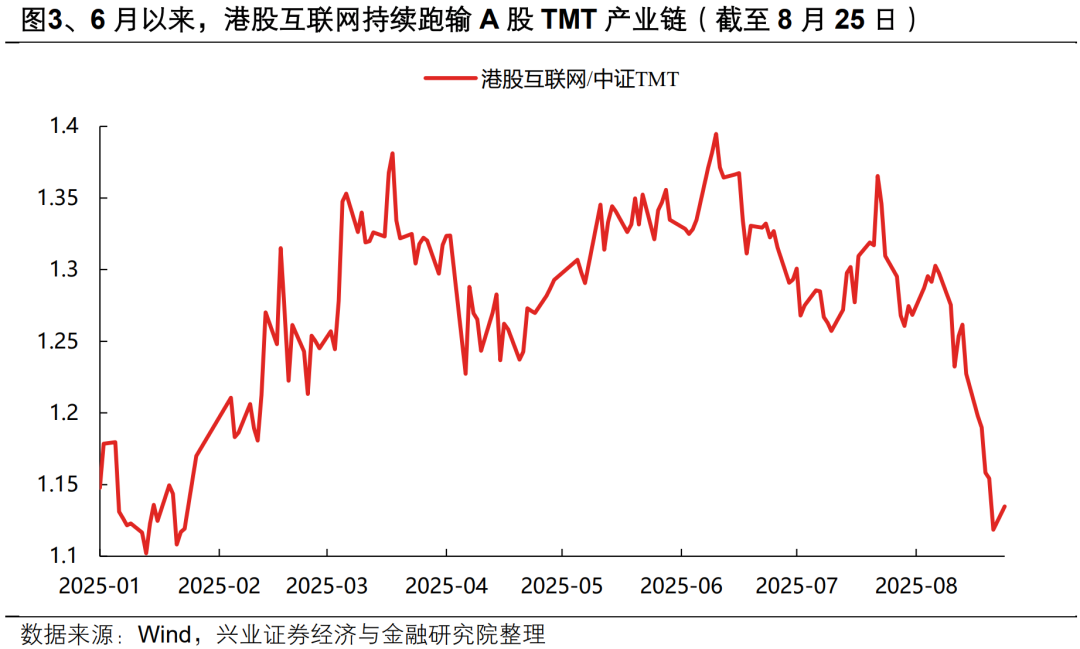 港股互联网:6月以来,港股互联网持续跑输A股TMT产业链,后续港股互联网具备多重补涨逻辑:第一,美国新一轮降息周期有望启动,外部流动性敏感的港股科技弹性更大;第二,算力国产替代进程加速,大厂下半年资本开支重新提速;第三,大厂重新加大投入后,AI应用进展有望进一步提速,具备最佳社交场景和生态的互联网平台是应用落地率先受益的方向,板块有望从“外卖内卷”叙事,回归AI叙事、科技成长叙事。