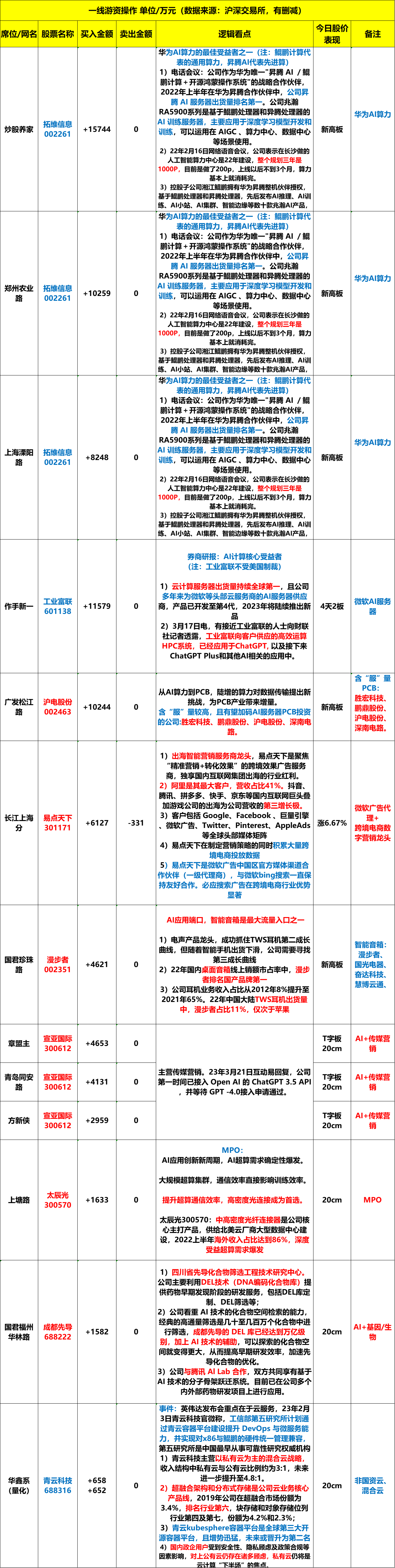 2023年3月22日,周三,龙虎榜解析。