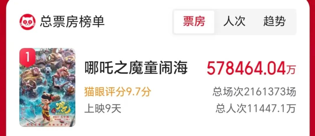 中国影史票房冠军诞生!《哪吒2》超越《长津湖》