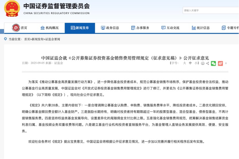9月5日,证监会修订发布《公开募集证券投资基金销售费用管理规定》,明确公募基金认购费、申购费、销售服务费率调降标准,优化赎回安排等举措,标志着公募改革第三阶段销售费率改革的落地。