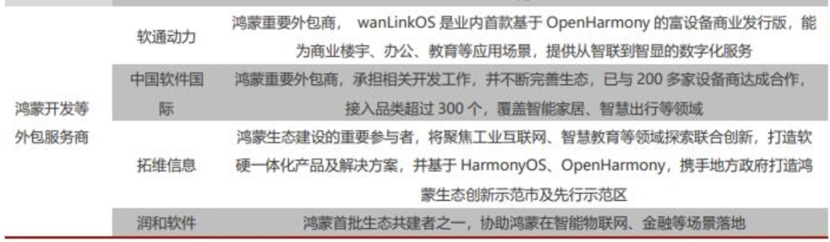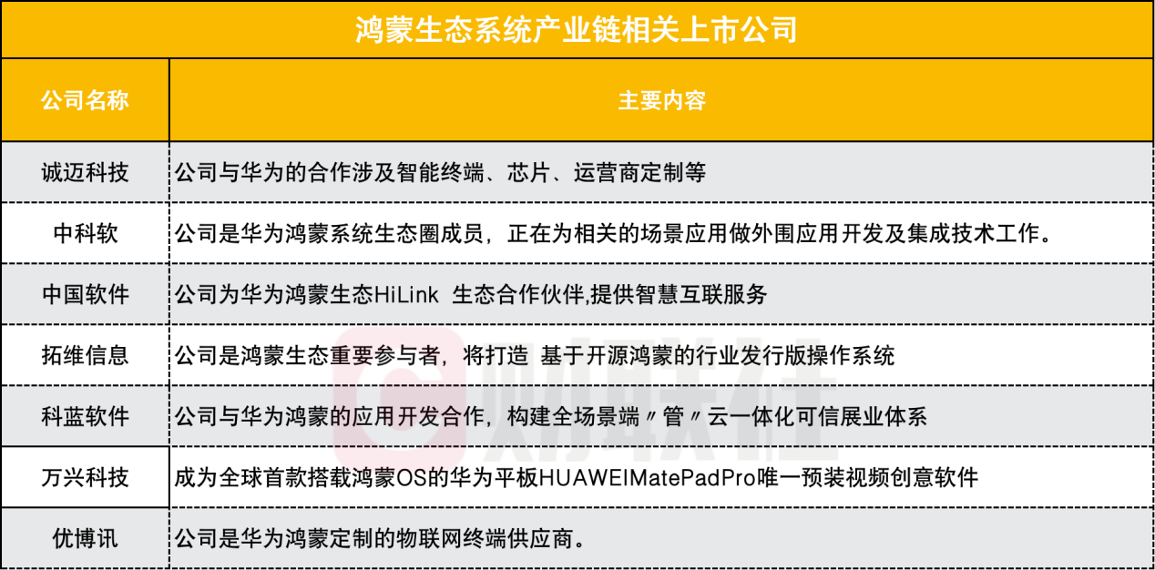 中银证券则进一步指出,当前已有近2000家合作伙伴加入HarmonyOS Connect生态,其中,直接参与者和合作者或成最大受益人,适配鸿蒙生态系统的软硬件企业在鸿蒙生态推广后也将持续收益。