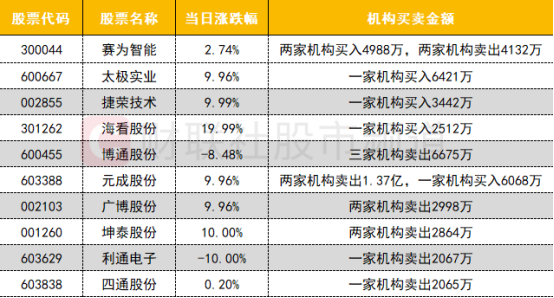 卖出方面,元成股份遭机构卖出1.37亿;短剧概念股广博股份遭机构卖出近3000万。