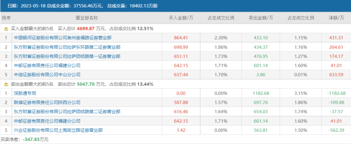 从资金面上看,正邦科技近日遭深股通大卖。据其5月18日龙虎榜数据显示,近3日期间,上榜营业部席位的成交额近3.76亿元,合计净卖出近350万元。卖出榜前五席位中,深股通专用席位净卖出近1200万元,“拉萨军团”东方财富证券拉萨团结路第二营业部净卖出近40万元。而在买入榜前五席位中,同为“拉萨军团”的两个席位合计净买入近440万元。
