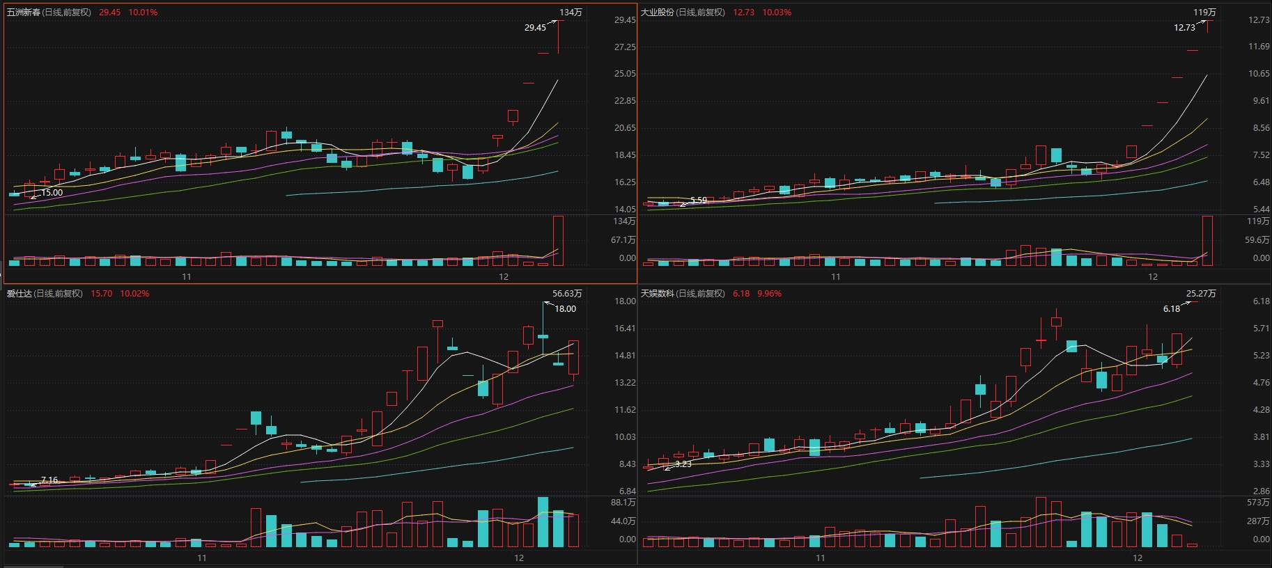 人形机器人概念持续火热,已陆续开发出灵巧手微型丝杠等新产品的五洲新春周五收盘涨停,斩获6连板;人形机器人业务目前尚处于探索和市场调查阶段的大业股份同样斩获6连板;而设立孙公司浙江爱仕达人形机器人有限公司的爱仕达录得16天9板;子公司智境云智境云创提供3D具身数据集服务的天娱数科录得5天3板。