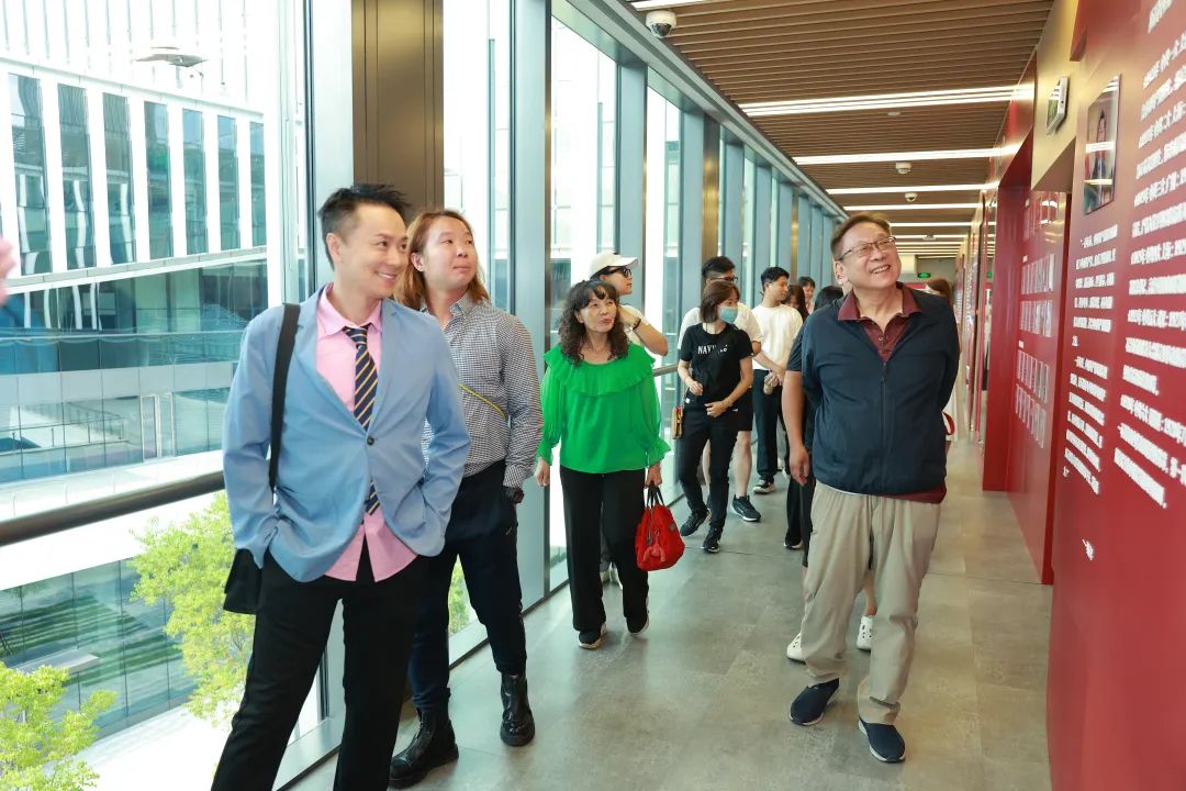 台湾青年一行十余人,首先来到银科金融中心G层。大楼占地约40亩,总建筑面积近12万平方米,与上海第一高楼——上海中心大厦为同一家建筑事务所设计。大楼东西两侧的拉索幕墙高50米、宽30米,极其壮观,并且全楼采用绿色能源、雨水回收、新风系统等众多节能技术,主楼和裙楼共同构成“A”“I”两个字母,凸显九方智投控股“科技驱动金融”的核心理念。来访的台湾青年们纷纷拿出手机拍照取景,笑称“打卡网红地标!”