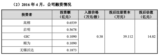 2016年4月,石头科技进行了一轮融资。顺为资本投资1090万元,入股价格为0.38万元/股。石头科技投后估值为14.82亿元。