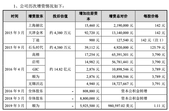 石头科技招股说明书显示,2016年3月,石头科技进行了一次股权转让,公司股东上海赫比将部分股权转让给了高榕、启明、顺为等机构。其中,顺为资本以352万元对价获得约0.3%的股份,投后石头科技估值为11.84亿元。