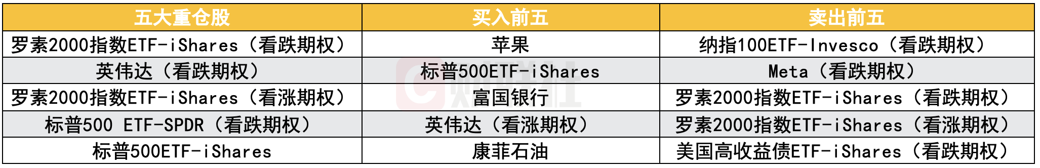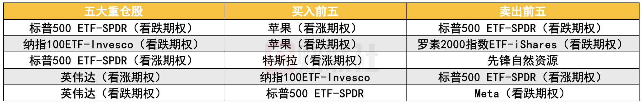尽管如此,仍有四家对冲基金将英伟达及其相关标的列入重仓股。不过,城堡投资和千禧管理都持有英伟达的看跌期权,在城堡投资的前五大重仓股中,英伟达看涨期权和看跌期权同时位列其中。