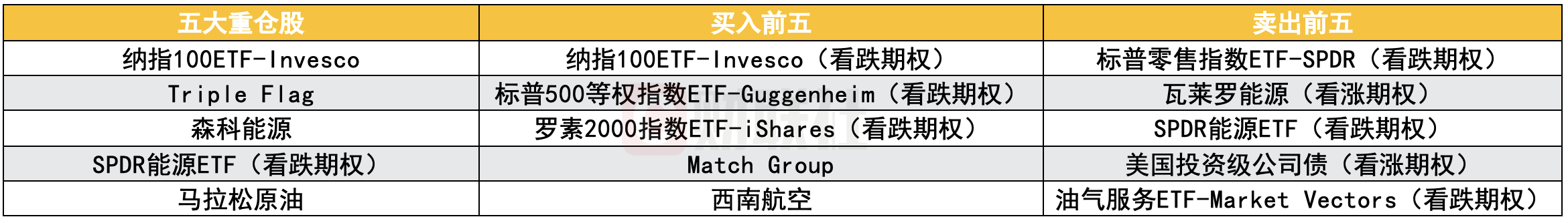各大对冲基金二季度对英伟达的操作不多,只有千禧管理的前五大买入标的列入了该股的看涨期权。此外,英伟达还处于德劭前五大卖出标的的行列中。