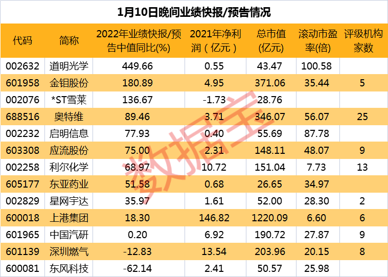 12股全年净利同比翻倍!预增股集体大涨
