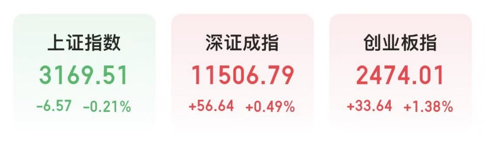 1月10日,A股大小指数走势分化。沪指全天弱势震荡,跌0.21%;深成指涨0.49%;创业板指在宁德时代等权重股助力下,涨1.38%。