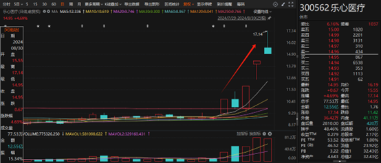 同时拥有生物医药和智能戒指概念的乐心医疗周五一度五天四板,8月26日至8月30日五个交易日股价累计最大涨幅达86.51%。乐心医疗8月8日披露半年报,上半年营业收入4.99亿元,同比增长29.63%;净利润3485万元,同比增长303.72%。公司8月11日披露投资者关系活动记录表,报告期内,远程心电业务的核心产品“十二导联智能心电衣*(iSENSE 系列)” 正式获批广东省药品监督管理局“二类医疗器械注册证”。同时心康医疗在贵阳搭建了第二个远程心电用户服务中心,可辐射西南片区如贵州、重庆、四川、云南等重点省份的心电衣业务。