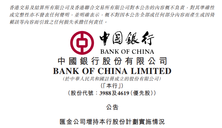 中国银行(3988.HK)同日公告,日前,接汇金公司通知,截至2024年4月10日,汇金公司通过上海证券交易所交易系统累计增持本行A股股份3.3亿股,约占总股本的0.11%;汇金公司共持有本行A股股份1887.92亿股,约占本行总股本的64.13%。汇金公司将继续支持本行长期稳健发展。