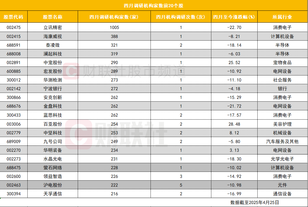 四月机构调研盘点:“果链龙头”获超千家机构调研