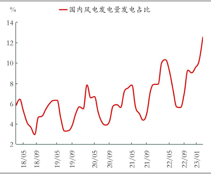 本周国家统计局公布5月发电数据,5月风力发电量744亿千瓦时,同比增长15.3%;1-5月份风力发电量3663亿千瓦时,同比增长18.4%。近年来,我国风电发电量占比持续提升,在今年夏季多地出现高温天气的背景下,电力总供需偏紧,风光等绿电或加速并网。