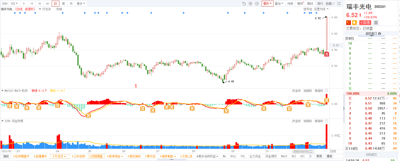 3)参考技术指标:瑞丰光电-升龙诀指标-出现龙信号