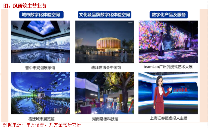 风语筑成立于 2003 年,以 CG 广告业务起家。自 2008 年起转型展览展示行业,并以城市馆、园区馆、科技馆、博物馆等为经营方向,主要客户为政府部门单位。公司一方面强化在科技与文化创意产业链的布局。另一方面,与时俱进,积极研发并掌握数字沙盘、VR/AR、全息影像等新型数字展示技术。