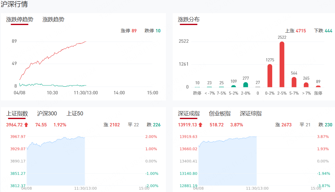 【九方午评】创业板指半日涨4.81% 全场超5000股上涨