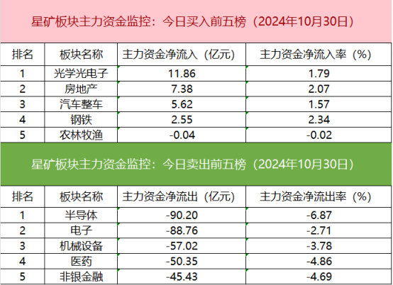 从主力板块资金监控数据来看,光学光电子板块主力资金净流入居首。