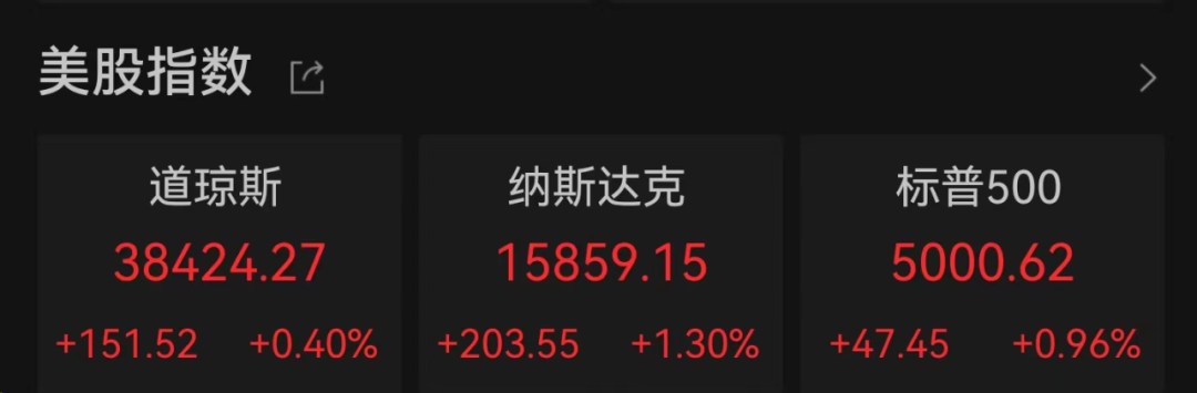 美国三大股指全线收涨