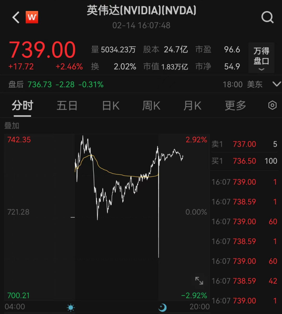 当地时间2月14日,美股三大指数集体收涨,收复了上一交易日的部分失地,纳指涨超1%。英伟达成为美股市值第三大上市公司。