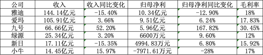 近期国内多家两轮电动车上市企业完成半年业绩报披露。
