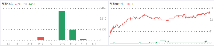 今天,大盘上午震荡小涨,下午震荡下跌,三大指数均跌超1%。板块上,中字头个股早盘冲高,三桶油一度大涨,中国海油涨超6%,中公高科4连板。银行股盘中异动,西安银行一度涨停。ST板块午后逆势走强,超10股涨停,*ST吉艾、*ST泽达、*ST紫晶涨超10%。下跌方面,通信概念股集体调整,华脉科技、通宇通讯等跌超5%,军工股全天低迷,亚星锚链、爱乐达等跌超5%。总体上两市个股跌多涨少,超4400股下跌,上涨个股仅429只,亏钱效应相当巨大。