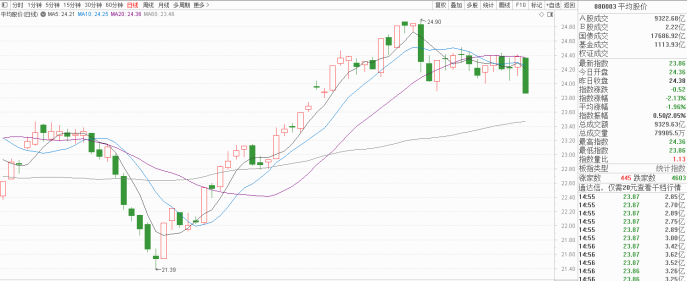 典型如平均股价,今日下跌2.13%,一根光脚阴线,直接就打破了原有的震荡态势,且短期尚未出现止跌信号,大概率还会继续下探。