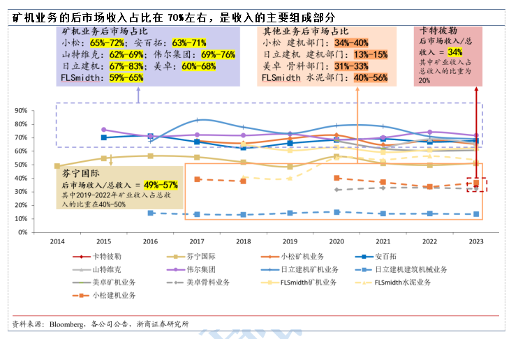 2)后端布局后市场业务:后市场业务在总收入中占比高达70%,且是保证设备可靠运行的必要环节,高质量的后市场业务是矿机企业持续盈利、增强客户粘性的关键抓手。