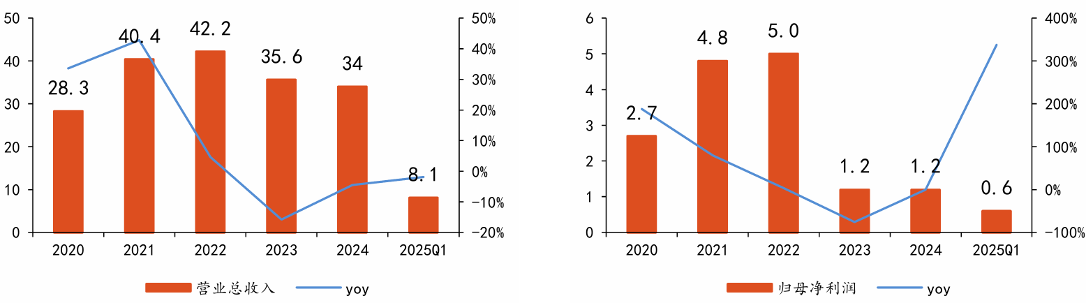 图:25Q1公司收入降幅继续收窄(亿元) 图:25Q1公司利润大幅增长(亿元) |