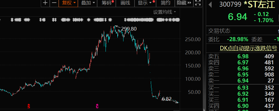 *ST左江年报显示,公司2023年营收5325.16万元,同比下降9.68%;净亏损2.2亿元,同比增亏。曾被称为“最贵ST股”的*ST左江,一直“流量”满满。因搭上DPU芯片概念,股价由2022年4月35元左右,一路狂奔至2023年7月299.8元/股。