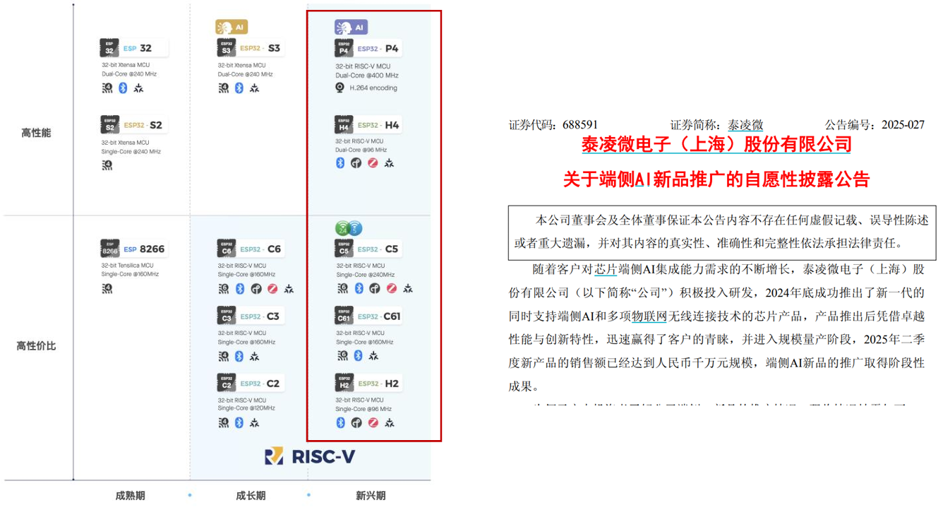 图:乐鑫科技产品矩阵 图:泰凌微自愿披露端侧AI新品推广 |