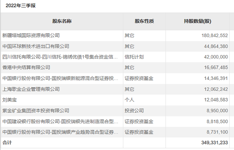 此外,紫金矿业集团资本投资有限公司截至今年6月末便持有西藏珠峰约799万股,而其在竞得了约1002.4万股份后,截至9月末的持股数仅小幅增加至895万股。紫金矿业投资(上海)有限公司则未出现在十大股东名单中。