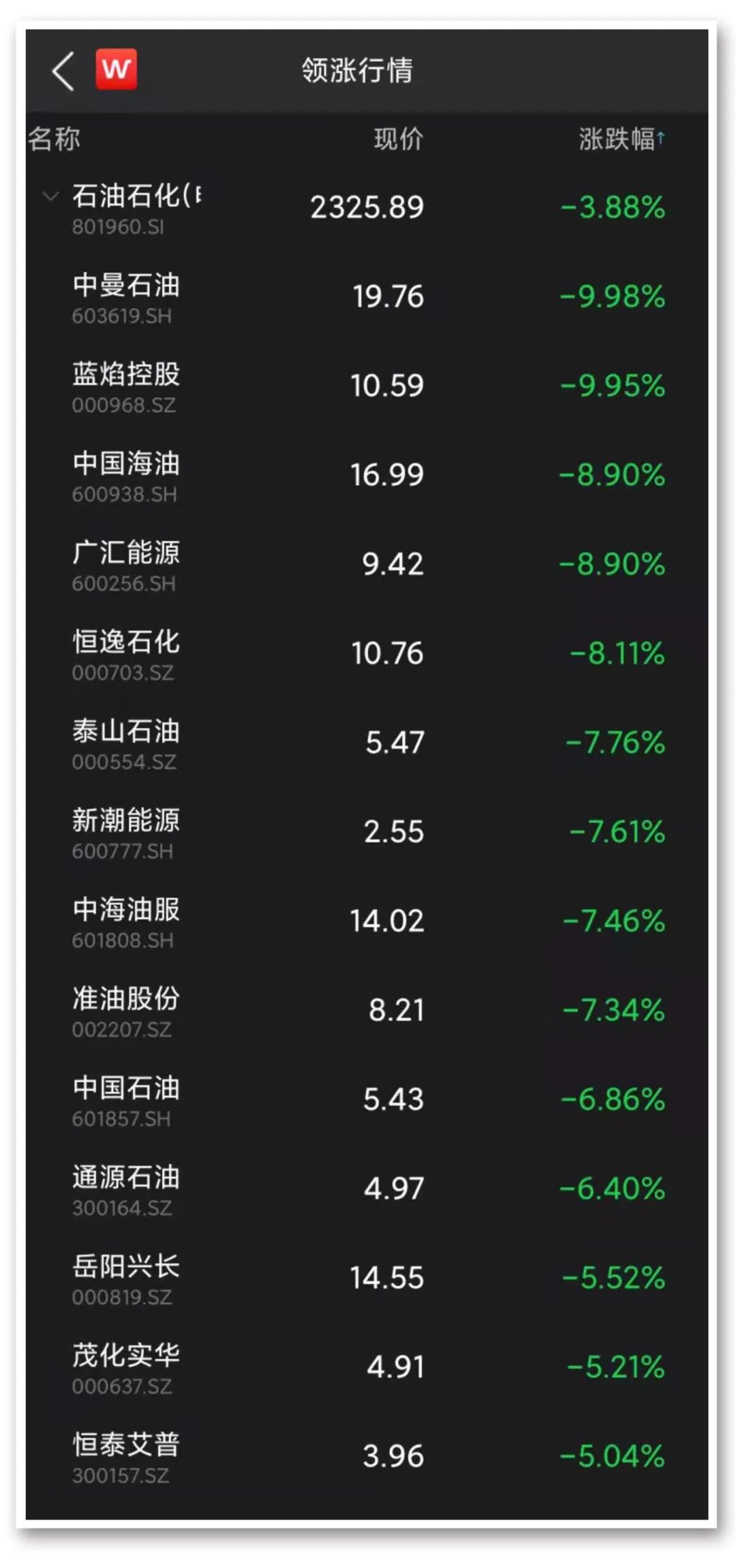 煤炭、石油板块20日盘中大幅下挫,截至午间收盘,石油板块方面,中曼石油跌停。千亿巨头中国海油跌近9%,盘中一度接近跌停,创上市以来最大跌幅。煤炭板块方面,上海能源跌停,山西焦煤、晋控煤业、兰花科创跌逾8%。