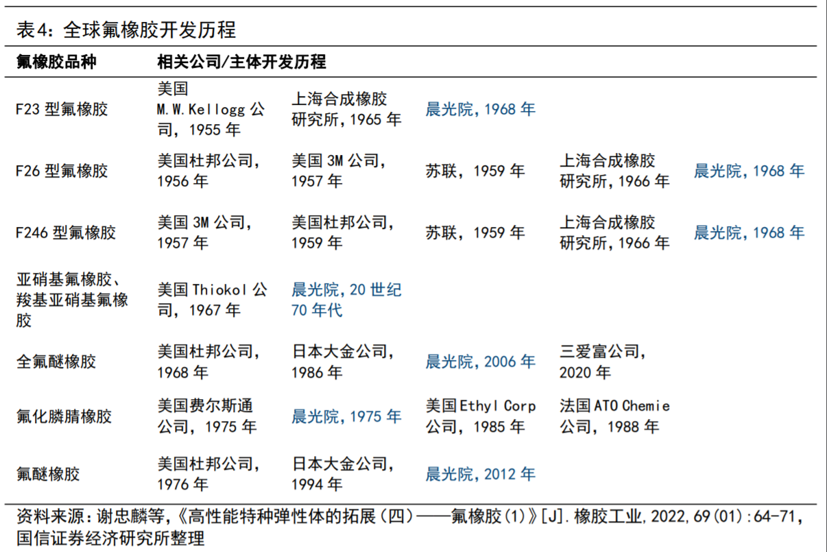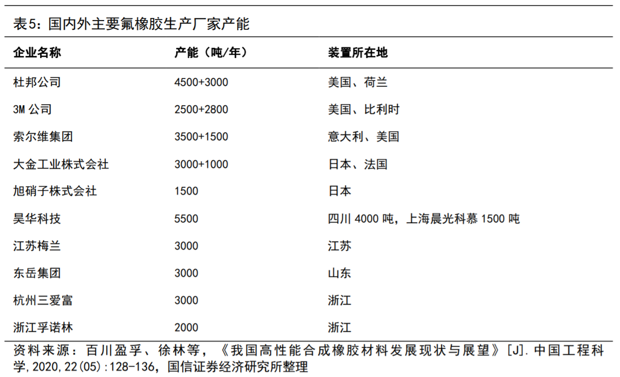 公司氟橡胶产能全球第二,国内第一,不断开发新产品。中昊晨光及其合营公司晨光科慕氟材料(上海)有限公司,氟橡胶产能共5500吨/年,产能全球第二,国内第一。晨光院在四川自贡建有4000吨/年高品质氟橡胶生产线,并于2014年与美国杜邦公司联手成立晨光科慕氟材料(上海)有限公司,各持股50%,科慕公司(美国杜邦公司旗下)向晨光科慕转让了成套的最新VitonTM氟橡胶生产技术,建有氟橡胶产能1500吨/年。