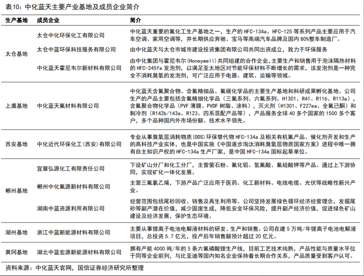 中化蓝天主要从事涵盖含氟锂电材料、氟碳化学品、氟聚合物以及氟精细化学品、电解液材料、等化学产品的研发、生产和销售。