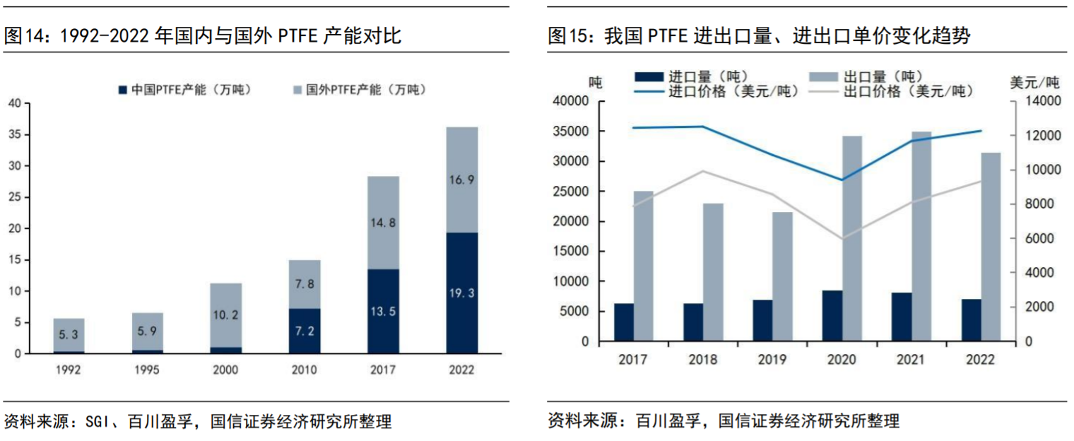 PTFE供需格局:国内PTFE产能集中度较高,行业仍处于扩张阶段。,结构性上部分低端产品供应过剩,而高端产品还依赖进口。