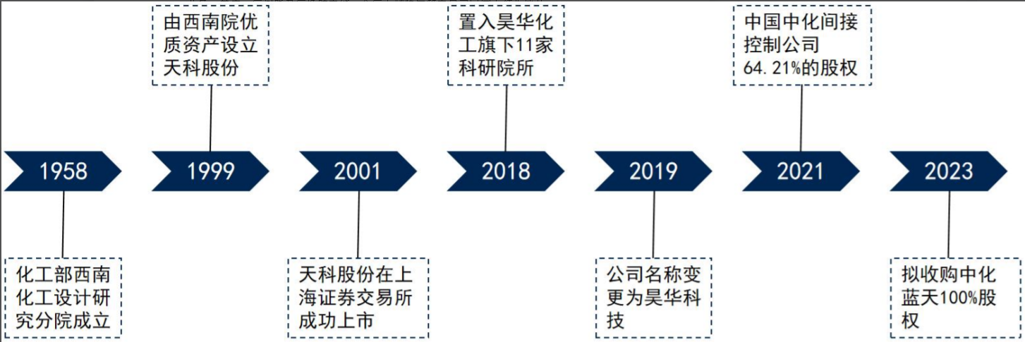 拟收购中化蓝天,整合两化旗下氟化工资源打造氟化工行业头部企业。2023年2月,公司发布公告筹划重大资产重组,昊华科技拟通过发行股份方式收购中化蓝天100%股权,此次重组交易意在进一步丰富上市公司氟化工产品线,完善产业链布局,同时整合中国中化内部氟化工资源,充分发挥规模优势及协同效应提高盈利能力。